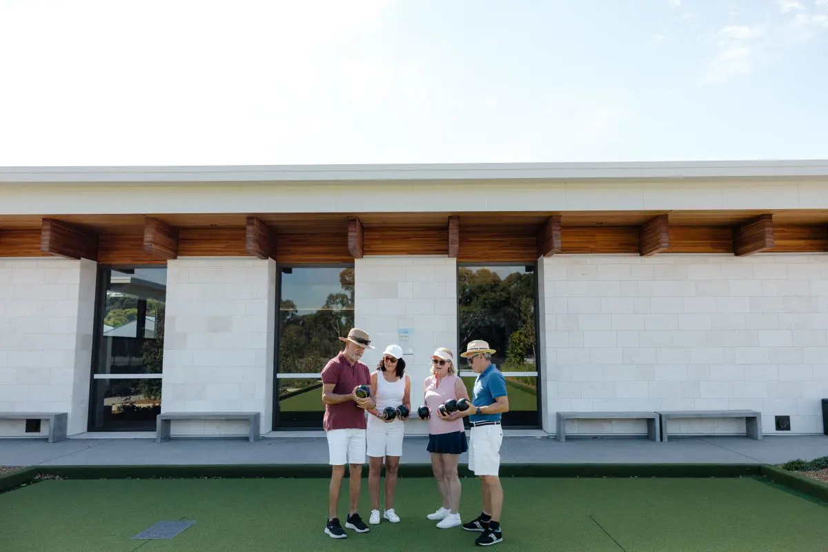 Heated pool, spa, gym, bowling green, sauna, games area, cinema/music room, sports bar, fire pit, veggie garden, library, salon, craft studio.