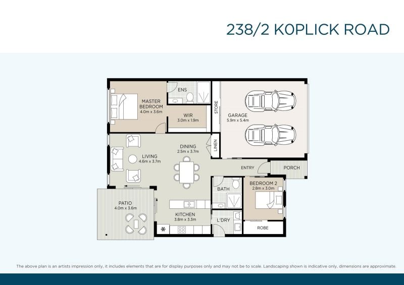 Enjoy fully ducted heating and cooling, ceiling fans, and durable timber flooring with carpeted bedrooms. The master features a walk-in robe and private bathroom, while the second bedroom shines with a solar skylight overhead.