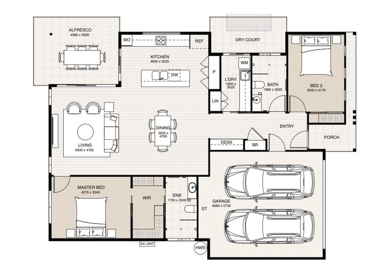 Introducing the Nautilus design, an elegant residence that features two spacious bedrooms and two well-appointed bathrooms, providing ample comfort and privacy. A generous two-car garage ensures secure parking and additional storage space. The Nautilus home design includes an expansive walk-in laundry and a dedicated study nook.