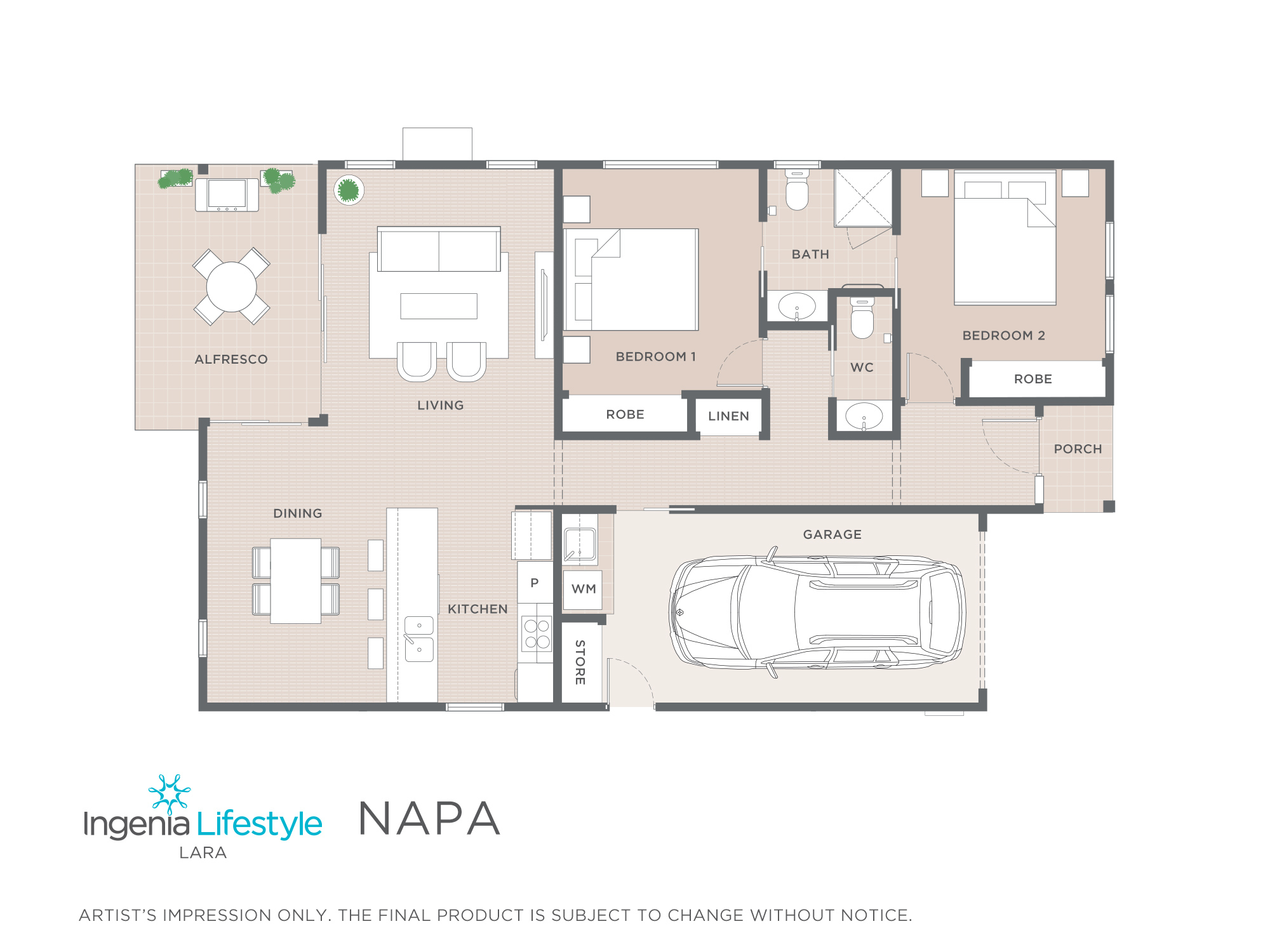 The Napa – a brand new 2-bedroom home within our Ingenia Lifestyle Lara over 55s community.