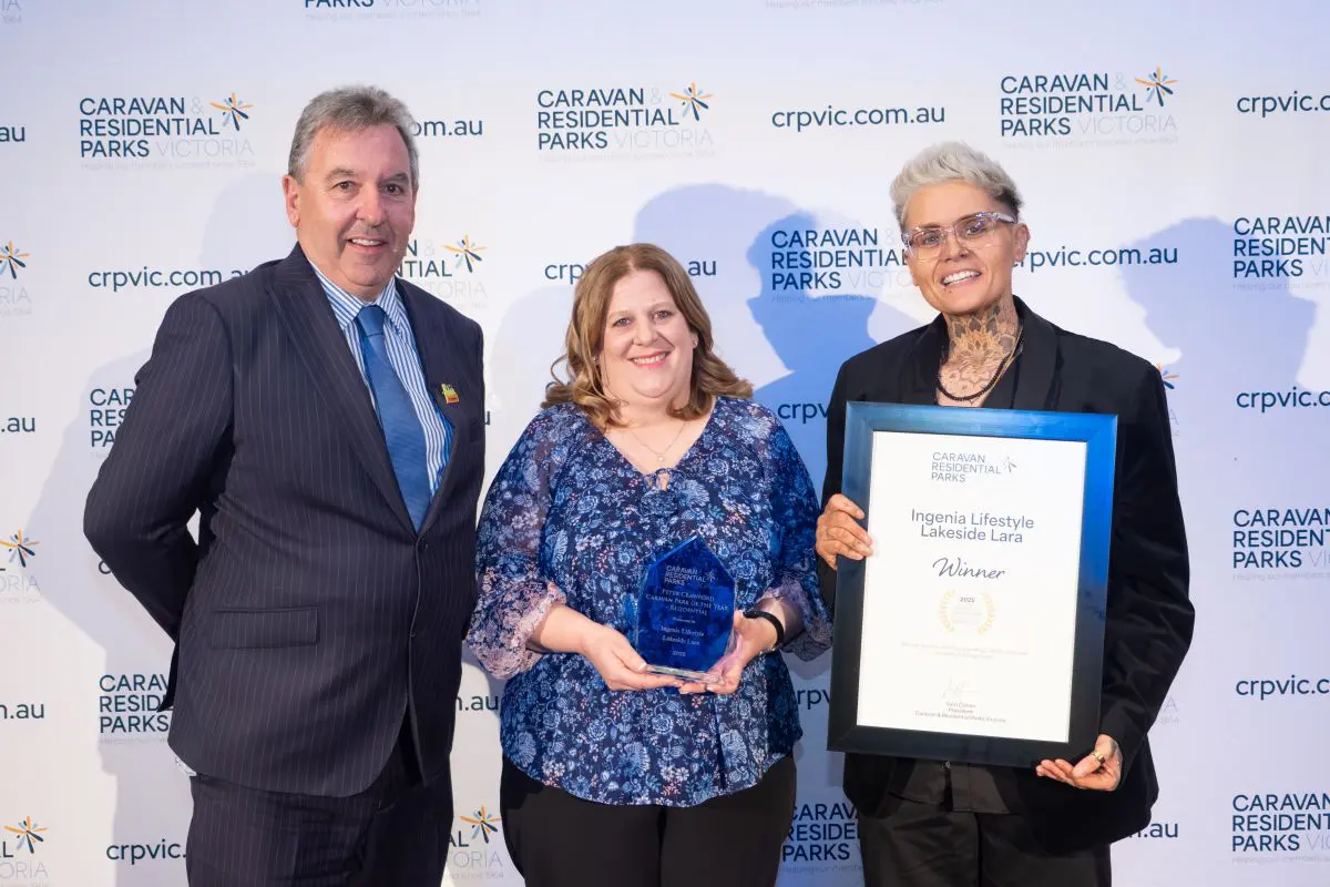 Ingenia Lifestyle Lakeside Lara has been recognised as one of Victoria’s leading communities, taking out the 2025 Peter Crawford Caravan Park of the Year – Residential Award – at the recent Caravan and Residential Parks Victoria (CRPVic) Awards.