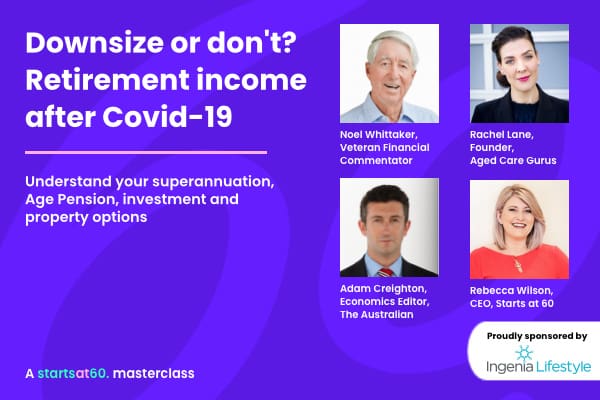 Experts Noel Whittaker, Rachel Lane and Adam Creighton talk about the economic outlook for 2020 and beyond; retirement income stream options; and the best ways to combine downsizing, super and pension.